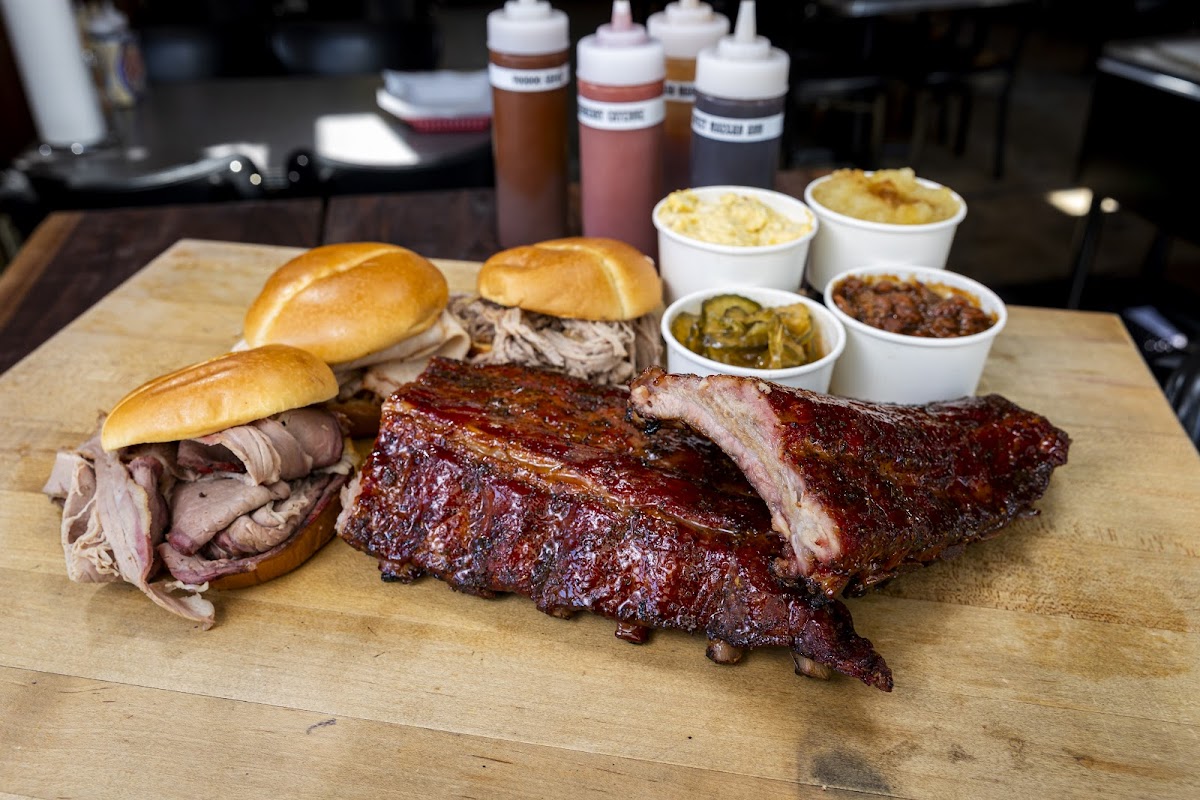 I go to Bogart's for the best-tasting ribs in the world. Their ribs feature a slightly sweet glaze with a hint of apricot -- so delicious I skip the sauce. The ribs gift you two dishes in one due to how they are cooked. The glaze on top of these ribs is sightly charred, caramelizing the sugars and creating a chewy layer that leaves me slowly peeling and devouring it with eyes closed. Underneath that caramelization is a, pardon the term, moist, juicy layer of meat that perfectly counterbalances the caramelization. Oblivious to the juice running down my beard, I swap between the layers of caramelization and juicy; occasionally gnawing on some bone for that last bit of meat, knowing I'm tasting BBQ heaven. The friendly owner and staff are efficient at getting you your meats. It has that classic BBQ joint atmosphere, but remember it is not a huge space so you may need to get your meat to go at peak times. If you want to be sure to get your favorite dish, come early, as high demand means they sometimes sell out.