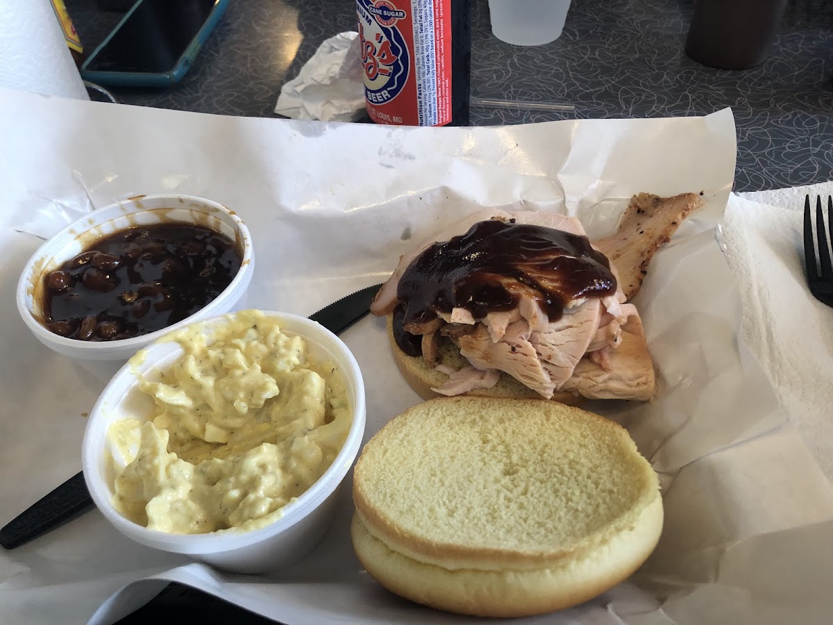 Great little BBQ spot you know it's going to be good if they are sold out of pastrami at noon ordered pulled pork and brisket with potato salad and beans